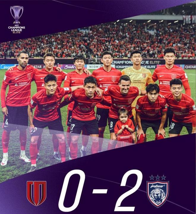 稍早时候结束的一场比赛,成都蓉城主场面对马来西亚球队柔佛新山,最终0-2爆出大冷门,首次亚冠主场输球且首次亚冠比赛被零封。