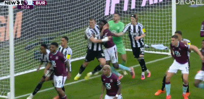 半场:纽卡2-0伯恩利,吉马良斯角球破门,戈登点射,皮雷斯染红
